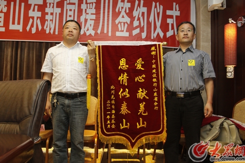 山東駐北川工作聯(lián)絡(luò)處副主任殷濤在致辭時(shí)說(shuō),“5.12”地震以來(lái),山東把北川縣作為自己的第141個(gè)縣全力援建,除了政府的援建之外,山東各界也投入社會(huì)力量參與到援川活動(dòng)中,其中由大眾網(wǎng)、生活日?qǐng)?bào)、山東電視生活頻道、山東廣播新聞?lì)l道共同參與的新聞援川活動(dòng)“今夏請(qǐng)喝北川茶”經(jīng)過(guò)三年持續(xù)不斷的開展,已經(jīng)深入到山東各地,北川茶也成為北川在山東的一個(gè)重要標(biāo)志,希望幾家媒體繼續(xù)努力,把“今夏請(qǐng)喝北川茶”活動(dòng)辦得更好,讓這個(gè)活動(dòng)成為連接魯川人民感情的紐帶。