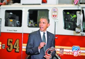 當(dāng)?shù)貢r間5日,美國總統(tǒng)奧巴馬前往紐約世貿(mào)中心遺址參加紀(jì)念活動前,先到一處消防站看望消防員并發(fā)表講話。