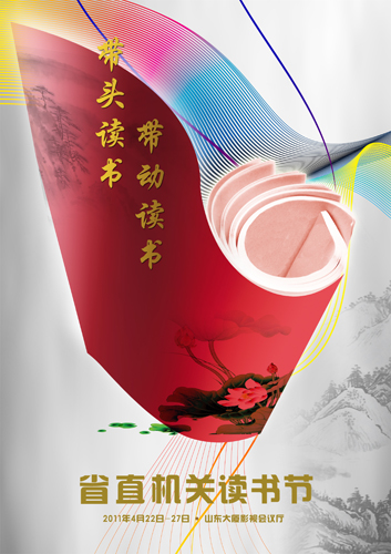 以讀書節標識為主要設計元素的宣傳畫,表達出讀書節以讀書學習為途徑,以加強修養,轉變作風,提升能力,推動省直機關作風能力建設系統工程,進而促進學習型黨組織和學習型機關建設為目的。該宣傳畫還以充滿動感和韻律的現代數字線條為輔,整體塑造出輕松而熱烈的學習氣氛,表達出讀書節不拘泥于傳統,勇于創新的新氣象。