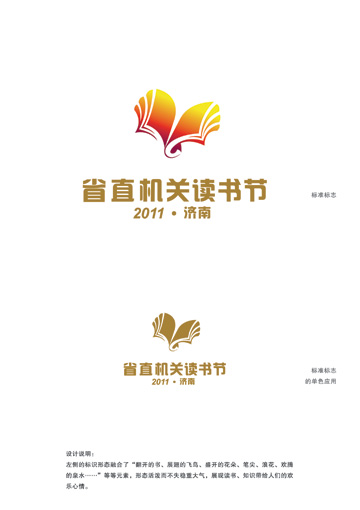 省直機關讀書節標識形態融合了“翻開的書冊、展翅的飛鳥、盛開的花朵、筆尖、翻飛的蝴蝶、歡騰的泉水……”等設計元素,展現了讀書帶給我們的快樂心情,充分體現出讀書節以讀書學習為途徑,旨在推進學習型黨組織和學習型機關建設,促進全民閱讀和學習型社會建設的目標。