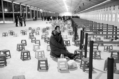 昨晚,從安徽淮北來上海打工的趙立春正盯著鐵路春運的信息屏幕上的信息。他本來已經做好了排一夜隊買火車票的準備,但是到了售票點才知道,為了讓買票的旅客不在寒風中徹夜排隊,鐵路方面采取了下午排隊領號、次日下午售票的方法。他排到了6號窗口第八的位置:“明天下午再來,應該就能買到票了吧。”記者 張馳 攝
