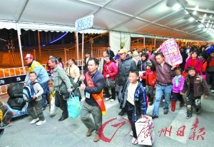 昨晚8時50分,琶洲異地候乘點開始轉運春運首趟列車旅客。 記者 陳安 攝