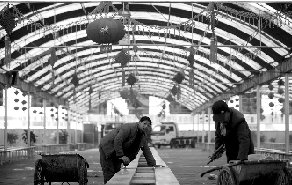 1月20日,工人在成都火車站搭建臨時候車棚。新華社發(fā)