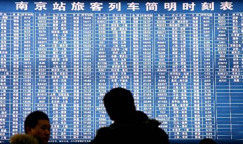 南京(江蘇),2011年1月9日 2011年春運首日火車票開始發售 1月9日,旅客在南京火車站售票大廳查看列車時刻表。 當日,2011年春運首日(1月19日)火車票開始發售。 新華社發(王新 攝)