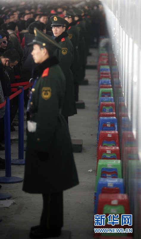 這是1月19日在鐵路上海站春運(yùn)售票“大賣場(chǎng)”拍攝的售票窗口前擺放的板凳。當(dāng)日是2011年春運(yùn)首日,鐵路上海站春運(yùn)售票“大賣場(chǎng)”在每個(gè)售票窗口前加設(shè)板凳,使旅客能坐著買(mǎi)票,免受彎腰低頭之累。 新華社發(fā)