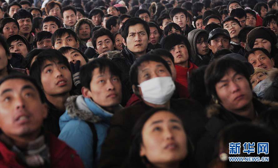 當(dāng)日是2011年春運首日,其中的酸甜苦辣都映在旅客們的眼神之中。新華社發(fā)(鈕一新 攝)