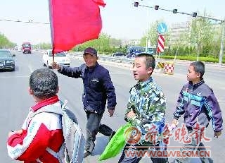 [提要] 在齊河縣308國道路口,張光城17年如一日地護送孩子們上下學。如今,孩子們上學要通過的308國道路口已經(jīng)安上了交通指揮燈,然而83歲的張光城仍然堅持每天護送孩子們,并且連鄰村的韓莊、代莊、張辛莊的孩子也納入他護送的范圍。