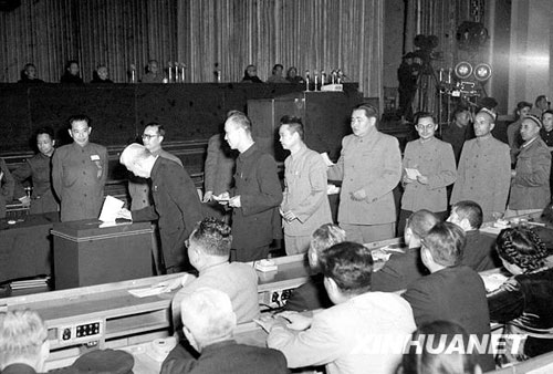 9月20日,出席大會的代表經投票表決,全票通過了《中華人民共和國憲法》。憲法明確規定,新中國的國體是工人階級領導的、以工農聯盟為基礎的人民民主國家,政體是實行民主集中制的人民代表大會制度。人民代表大會制度作為我國的根本政治制度正式確立。