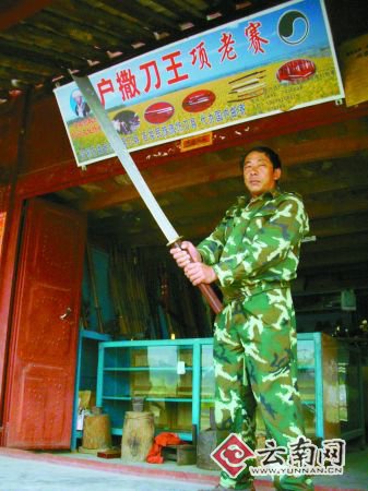 早在獲戶撒鄉(xiāng)首屆刀具評(píng)比大賽第一名之前,項(xiàng)老賽“刀王”之名早已流傳在外。戶撒刀制作工藝被評(píng)定為國(guó)家級(jí)非物質(zhì)文化遺產(chǎn)后,項(xiàng)老賽被評(píng)為首個(gè)傳承人,“刀王”的寶座穩(wěn)如山。