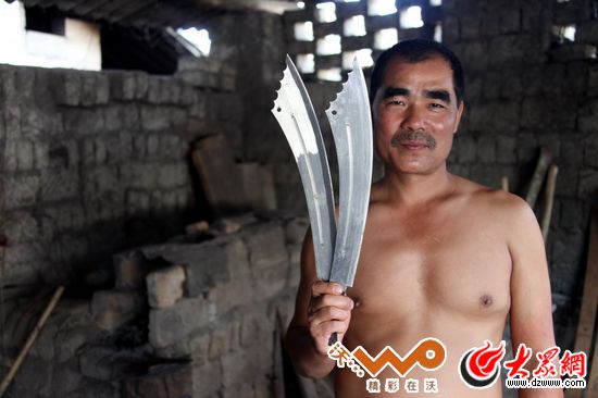 戶撒傳統(tǒng)打刀匠人,身后的打刀作坊還是十年前的樣子。