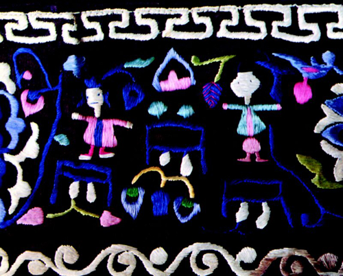 大理國白族服飾,王室及官員皆衣綾羅綢緞。元代,服色,“略本于漢”,“男人披氈椎髻,婦人不施粉,酥澤其發。以青紗分編繞首系,裹以攢頂黑巾。耳金環,象牙纏臂。衣繡方幅,以半細氈為上服”。