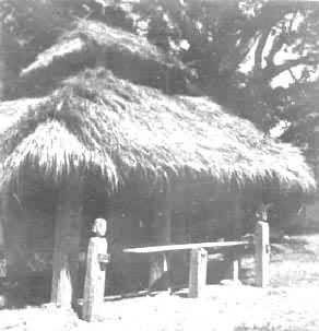 社神。村寨的守護神。各村寨中央設(shè)有寨心木樁,周圍以石塊砌成高臺,表示為社神所居。也是祭祀的社神中心。墨江的布朗族每年農(nóng)歷二月間,用牛一頭、公雞一對、谷一斗、米一升、香一把為祭品,在“神林”中祭祀社神。由白摩用削尖的栗木棍殺牛,割下牛頭掛在樹上,同時獻雞、燒香。祭畢,全村老少在樹下聚餐。婦女特別是孕婦及其丈夫禁食牛頭、雞頭。祭后三天內(nèi)不準下地勞動,不能接近大樹。(見彩圖[村寨守護神(布朗族)]