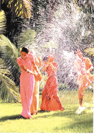 關于傣族的年節活動,《車里》一書中有段記載:“元旦之晨,所有貴族平民,皆沐浴更衣,詣佛寺賧佛。婦女輩則各擔水一挑,為佛洗塵,由頂至踵,淋漓盡致,泥佛幾為之坍倒。浴佛之后民眾便互相以水相澆,潑水戲之能能事”。這段記載雖不盡其祥,但已告訴人們,潑水是傣族過年時必須舉行的一項活動。上文所說的“元旦”并非公歷的1月1日,而是傣歷新年來臨之日。
