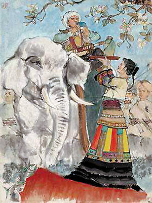 《召樹屯》是傣族民間敘事長詩。在傣族地區(qū)流傳過程中,形成許多異文。西雙版納地區(qū)的傣族稱為《召樹屯》或《召樹屯與婻吾婼娜》或《孔雀公主》;德宏傣族地區(qū)稱為《婻侻罕》。此外,還有異文《召洪罕與婻拜芳》(流傳於西雙版納)和《召西納》(流傳於德宏地區(qū))。除敘事詩外,傣族民間還流傳有大量的情節(jié)相似的故事。以及有關(guān)這個(gè)故事產(chǎn)生的地理﹑風(fēng)物﹑人物等傳說。