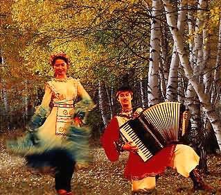 在民間許多節日喜慶或娛樂晚會中,熱烈奔放、活潑開朗的俄羅斯民間舞蹈是不可缺少的娛樂節目。為這些舞蹈伴奏的音樂,多是以獨唱或對唱形式演唱的舞蹈性短歌,或者以民間樂器演奏的樂曲。俄羅斯民間流傳的舞蹈歌曲數量很多,它們多內容詼諧、風趣,曲調活潑明快,結構方整,并可即興填詞,既適于伴奏舞蹈也可單獨演唱;舞蹈音樂的曲調一般來源于民歌,但也有少量專門的舞曲如《卡林努什卡》《米爾卡》《阿金諾奇卡》等。歌舞音樂多是在喜慶娛樂的場合中所唱的短歌,數量很多,結構方整,宜于即興填詞。多用拍,音域在八度與十度以內,內容詼諧、風趣,具有簡潔、明快的特點。
