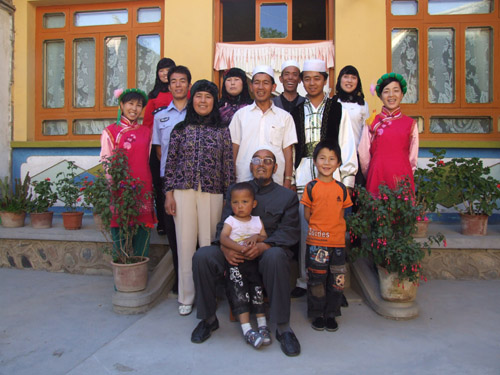 全家福:2006年6月29日,甘肅省臨夏回族自治州東鄉族自治縣馬有德老人(前左)一家,在自家蓋的小院里合影。東鄉族主要聚居在甘肅省臨夏回族自治州的東鄉族自治縣,少數散居在青海省、寧夏回族自治區和新疆維吾爾自治區。東鄉族信仰伊斯蘭教,衣食住行及風俗習慣與回族基本相似。
