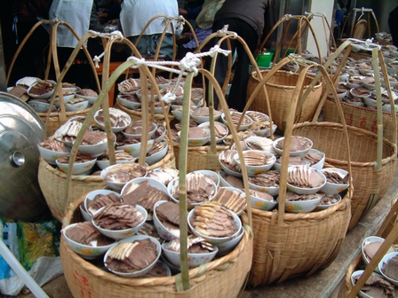 儀式結束后,開始會餐。有的地方經濟條件較好,地方也寬敞,擺上十幾桌乃至幾十桌飯菜,大家歡歡喜喜,一起進餐;有的地方是吃份兒飯,回族群眾叫“份碗子”,即每人一份。對于節前散了“乜貼”,捐散了東西,而沒來進餐的,要托親友、鄰居給帶一份“油香”去品嘗。