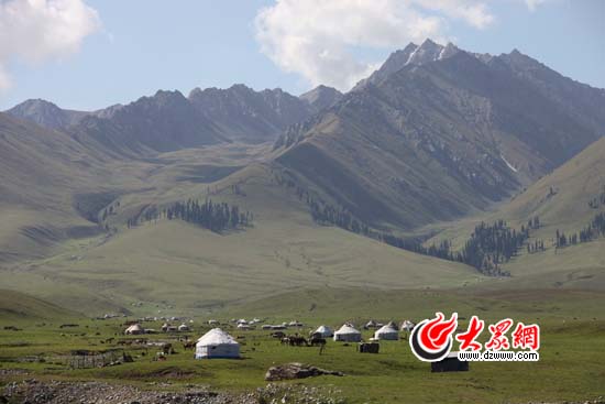 [提要] 天山雪峰腳下,那拉提空中花園,哈薩克牧民的家園。