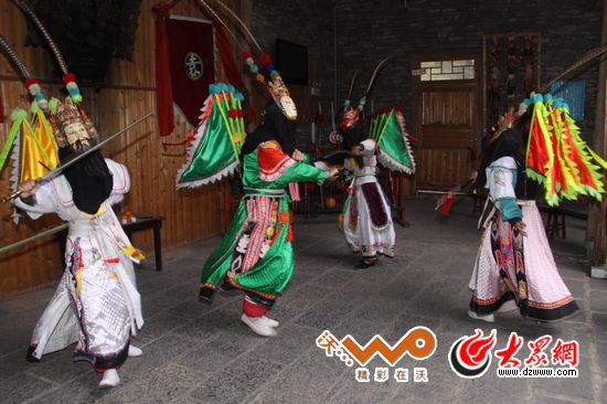 儺戲演員在上臺(tái)前扮裝(施曉亮攝)