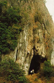 廣東海南島崖縣三亞鎮(zhèn)西10公里處。、山的東端面南有一石洞。洞內(nèi)石灰?guī)r質(zhì)。洞里項(xiàng)壁正中,一石柱下垂如懸筆,筆尖終年滴水不斷,地下有一平面石塊,正好承接筆尖摘下來(lái)的水,人們稱(chēng)此洞為仙洞神筆。當(dāng)?shù)乩、漢民族的人民送子上學(xué)前,都要帶孩子前來(lái)此洞祈禱,伸手接筆尖滴下的水,接住水,則預(yù)兆孩子聰明好學(xué),前途無(wú)量。此仙洞外不遠(yuǎn)還分布有十余個(gè)洞,個(gè)個(gè)迂回宛轉(zhuǎn)。洞中有石筍,形似馬、狗、猴等動(dòng)物,實(shí)在是旅游的好去處。
