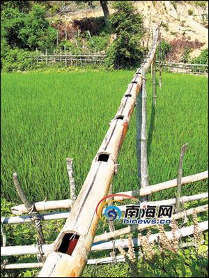 用竹管引水灌溉農田。