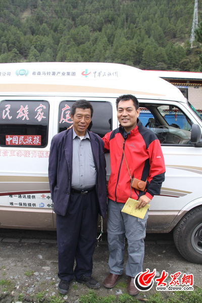 在白瑪店村頭,領隊施曉亮與10年前的采訪對象門巴族老人多布登意外相逢。