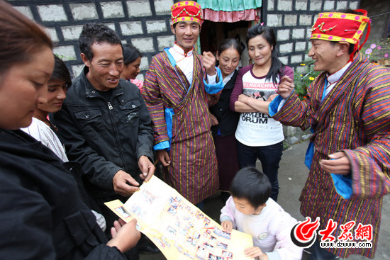 12日上午,采訪團從途中小憩的工布江達縣沿著川藏公路穿行百余公里后,到達中國唯一的門巴族聚居鄉——更章門巴民族鄉,當時采訪團還未從沿途秀麗的山川美景中回過神來,采訪車已駛入了一個頗有現代氣息的小鎮。在下車問路時,領隊施曉亮與10年前的采訪對象門巴族多布登大哥意外相逢。