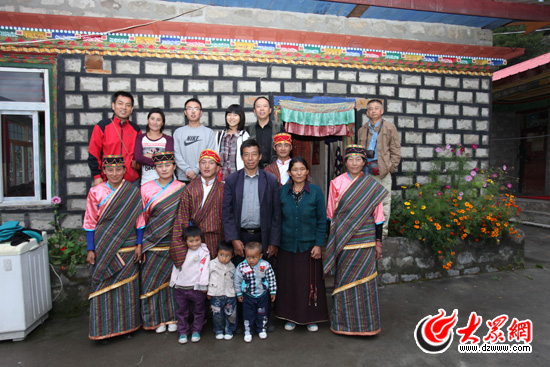 大眾網-聯通3G林芝9月18日訊 (記者 王磊)9月11日,離開拉薩、翻越5000多米的米拉山口,從內陸性氣候的拉薩地區來到海洋性氣候的林芝地區,沿著尼洋河畔的川藏公路,在數道彩虹的歡迎下,在如畫的風景中一路東行,“黨旗漫卷中國紅——走進56個民族家庭”大型接力式采訪團一路向東,9月12日來到林芝地區更章門巴民族鄉。10年前,門巴族人從災害頻發的深山老林遷到了這里。10年后,在中秋節這天,白瑪店村頭領隊施曉亮與10年前采訪過的老村支書多布登重逢,在他家中,我們看到了門巴人10年的變化,門巴族的兄弟姐妹們用熱情的鍋莊歌舞送上了中秋的祝福。