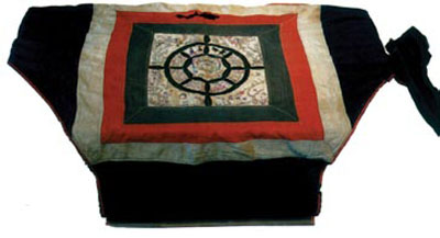 嬰孩的背帶,也常用各種有色絲線編織花卉、蟲 鳥,精美鮮艷,栩栩如生,表現了仫佬族人民的藝術天才。