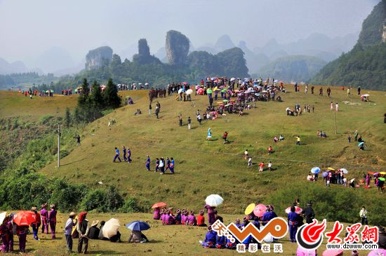 仫佬族走坡節是青年男女傳情達意的平臺。(謝盛鉅 攝)