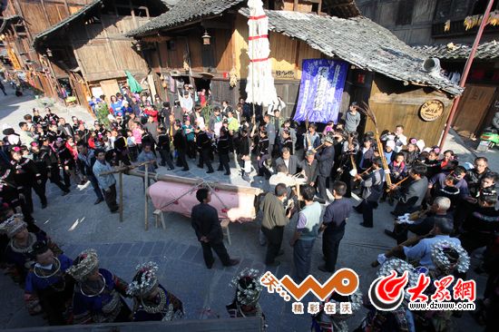 千戶苗寨里的一場傳統葬禮,因為逝者高壽,因此喪事當喜事辦