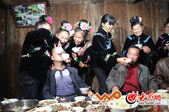 雷山苗族13年一遇的鼓藏節,主人勸酒熱情有余,不靠語言勸酒,直接灌。