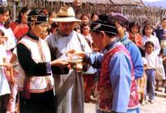 結婚那天,送親的喜車一定要在落日前到達。男方會在中途派人迎接,并向客人敬酒。然后一人回去報信,一人陪同緩緩前行。