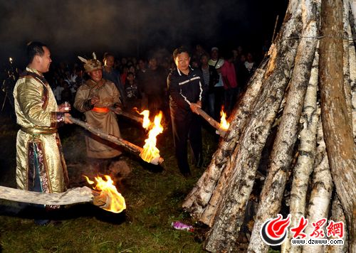 鄂倫春族代表點(diǎn)燃篝火