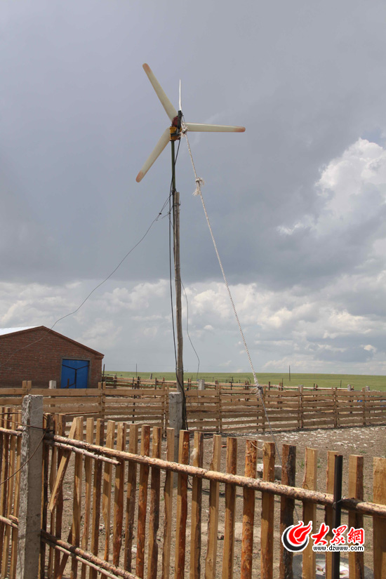牧區(qū)里沒有專門的用電線路,只能靠屋后的風車來發(fā)電。