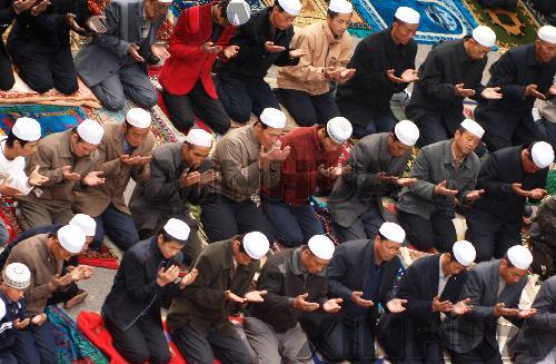 10余萬穆斯林群眾在西寧東關清真大寺聚禮,歡度開齋節。(資料圖片)