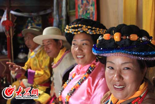 光布卓瑪(右)、雄巴米米(右二)姐妹倆是麗江市級(jí)非遺傳承人。她倆會(huì)演唱許多普米族的傳統(tǒng)民歌,這在這個(gè)年齡的普米族人中不多見(jiàn)了