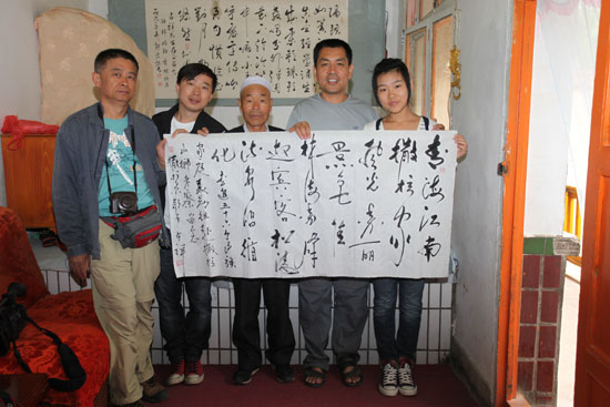 自稱沒有文化的韓占祥,為我們采訪團即興書法一幅