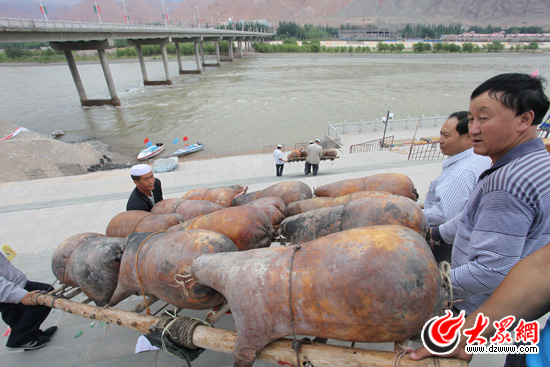 施曉亮:現(xiàn)在應(yīng)該來講這種羊皮筏子項(xiàng)目跟原來的肯定是大有區(qū)別的,一個(gè)是這段黃河可能比較平穩(wěn),另外一個(gè)就是肯定比原來的羊皮筏子扎的更寬更大一些,更平穩(wěn)一下,所以他們一開始的期望是非常刺激,結(jié)果漂回來之后都說不像想象中的那么刺激,太平穩(wěn)了。