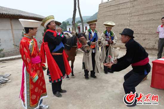 土族婚禮1:夫家拜請“納什金”去女方家迎娶。