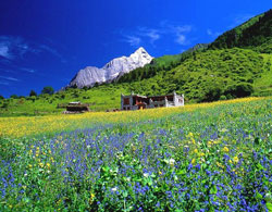 四姑娘山是一片神奇美麗的土地,氣候特殊,垂直高差顯著,動(dòng)植物資源十分豐富。其中的山山水水都是那樣的原始、古樸、幽靜和神秘。春風(fēng)中百花盛開(kāi);夏日里草木蔥蘢;金秋時(shí)節(jié)色彩繽紛;寒冬季節(jié)白雪皚皚。四時(shí)風(fēng)姿,各擅其美,朝暉夕陽(yáng),氣象萬(wàn)千,一派秀美的南歐風(fēng)光。