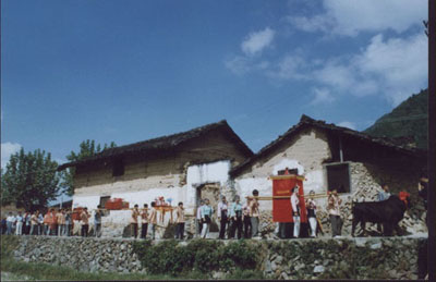 畬族新娘一切都新的,如有二位以上新娘同日出嫁,后走的路意為舊路,就要牽牛去踏過,牛踏過的路又是新路了。若估計不出,就不管前面是否有新娘走過,就索性牽牛踏過。家境好的人家則以牛作嫁妝,在前頭開路。