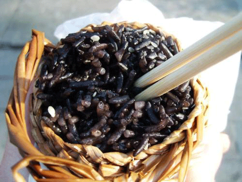 為農歷三月三食用。烏米飯的制法,是用山上的一種野生植物烏稔樹(杜鵑科,烏飯樹)的葉子,放到石臼舂碎后,貯到布袋里,連袋放到鐵鑊里,加適量的水熬湯,讓它釋出紫黑色的湯汁來,而后去掉袋里葉渣,將精選的糯米泡進湯進汁里,幾小時后,撈起放到木甑里蒸熟即成。烏米飯色澤烏黑發藍,香軟可口。由于烏稔能起開脾、防腐作用。故將烏米飯放在通風陰涼處,數日不腐。食用烏米飯有準備春耕,迎接豐收的象征意義。