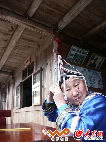 - 藍(lán)大媽頭上戴的畬族傳統(tǒng)的銀飾鳳頭冠