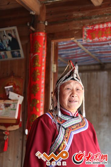 9年前照片,藍(lán)陳契在她的老宅里精心穿戴畬族傳統(tǒng)服飾。(施曉亮 攝)