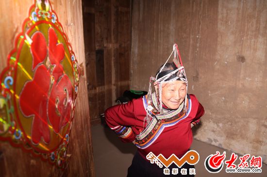 因?yàn)槁犝f有記者來采訪,藍(lán)大媽特意穿上了絳紅色鑲五彩花邊的畬族傳統(tǒng)服裝,腰系著彩帶,頭上則戴著畬族特有的銀飾鳳頭冠,愛笑的藍(lán)大媽整個(gè)人顯得特別精神,一點(diǎn)都看不出來這是一位年過七旬的老太太。