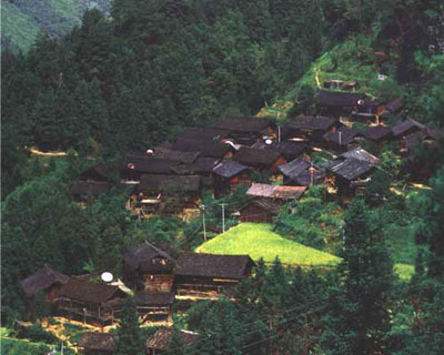 水族村寨一般選擇在平壩建村,或在半山腰臺地建村,少數在山頂建村。村寨的規模大小不等,一般有十幾戶、幾十戶,少者只有幾戶,多者達上百戶。水族是農耕民族,村寨大小要根據耕地面積而定,耕地集中面積大,則村寨大,耕地分散面積小,則村寨小。老寨大而新寨小。但不論是哪種類型的村寨,都要有下列四個有利條件才可作為選擇蓋屋建寨的場所:一是容易獲得水源的地方,二是有建筑房屋的竹、木等材料的處所,三是靠近耕地的地方,以便耕種,四是野獸出沒較少的地方。