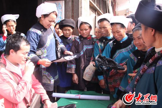 韋桃花在三洞鄉(xiāng)“趕場”時集中收購水族婦女的平時繡的馬尾繡
