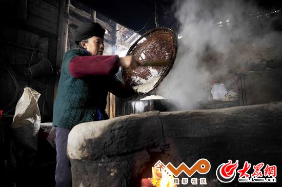 進入年末臘月,土家阿婆開始打糍粑,圓圓的糍粑象征團團圓圓