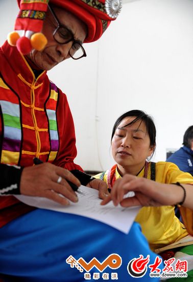 宣恩縣民間藝術大師董興林在給他的徒弟們傳授“宣恩耍耍”技藝.